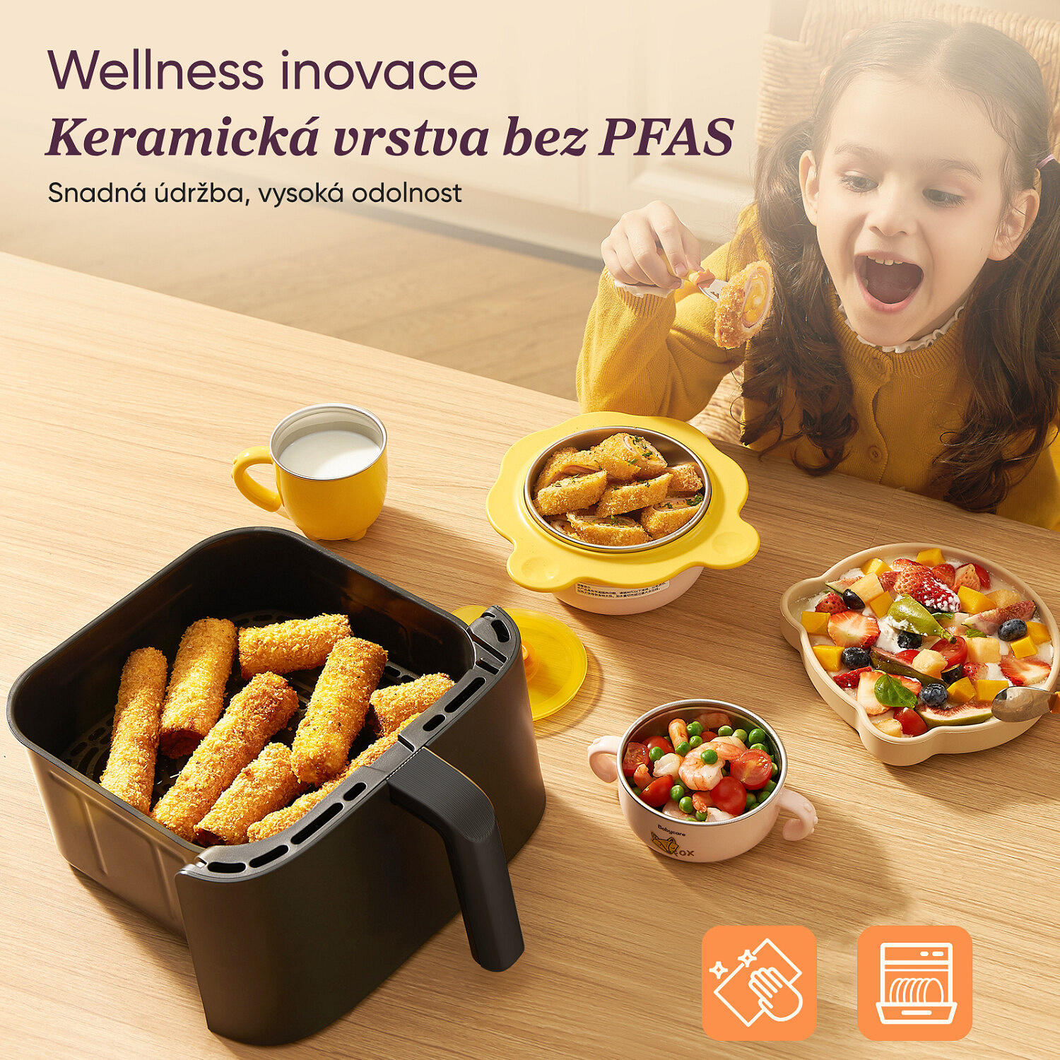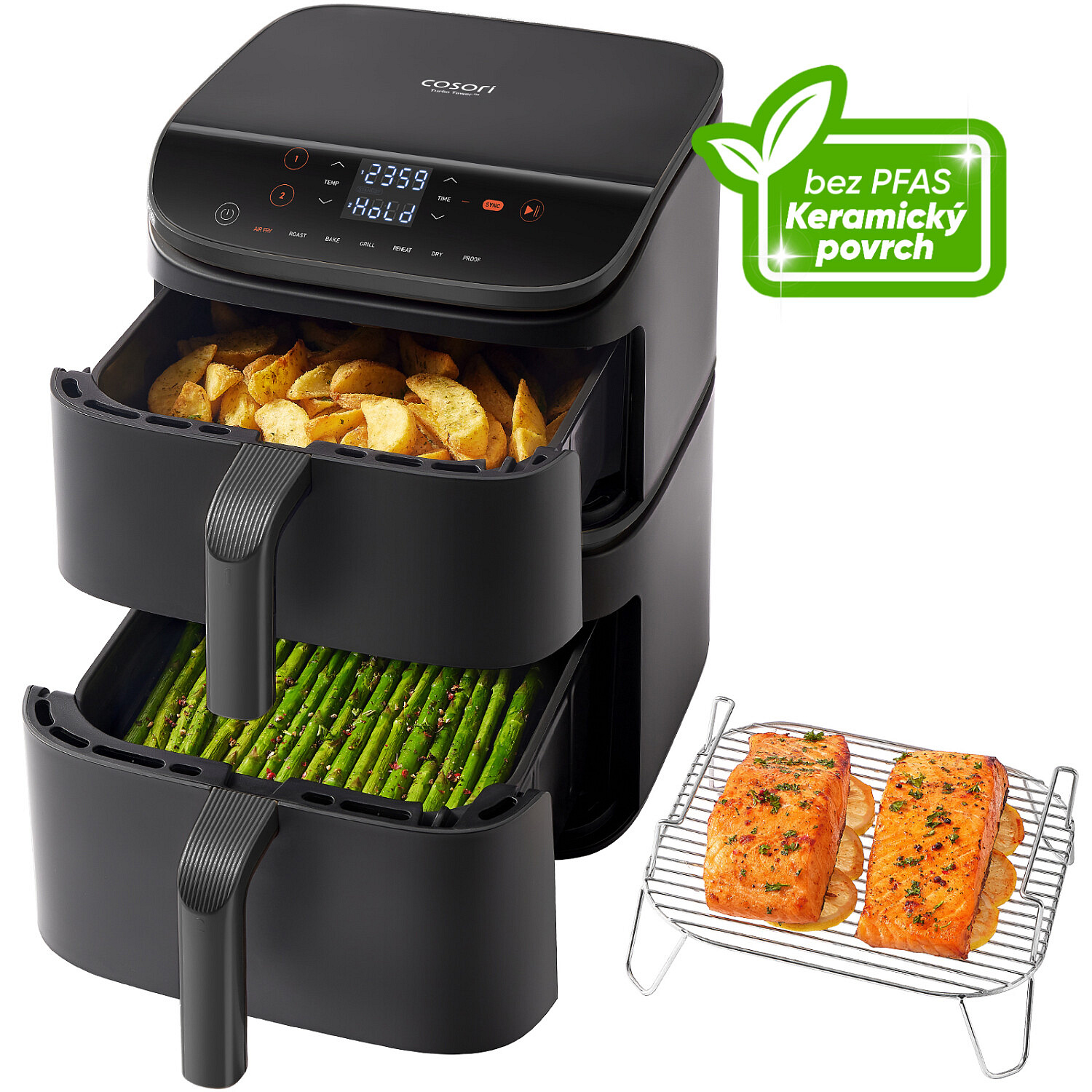 Představujeme revoluční horkovzdušnou fritézu Cosori Turbo Tower. Stane se z ní dokonalý kuchyňský pomocník, který povyšuje vaření na novou úroveň. S působivou kapacitou 10,8 litru je tato inovativní horkovzdušná fritéza ideální pro přípravu vydatných jídel pro rodinu a společenské akce. Keramická vrstva košů a grilovacích talířů je zcela bez PFAS (teflon) a nabízí mnohem vyšší odolnost a jednoduchou údržbu.