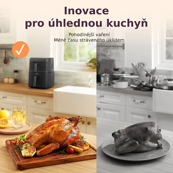 Díky pokročilým motorům připravíte oblíbená jídla s použitím minima tuku, s až 65% úsporou nákladů a až 55% úsporou času. Koše a crisper talíře jsou navíc omývatelné v myčce! Nenechte se zbytečně zdržovat u plotny a dřezu. Využijte svůj čas smysluplně.