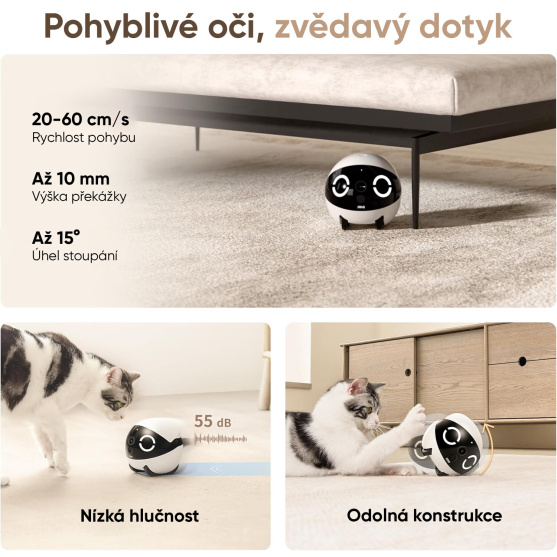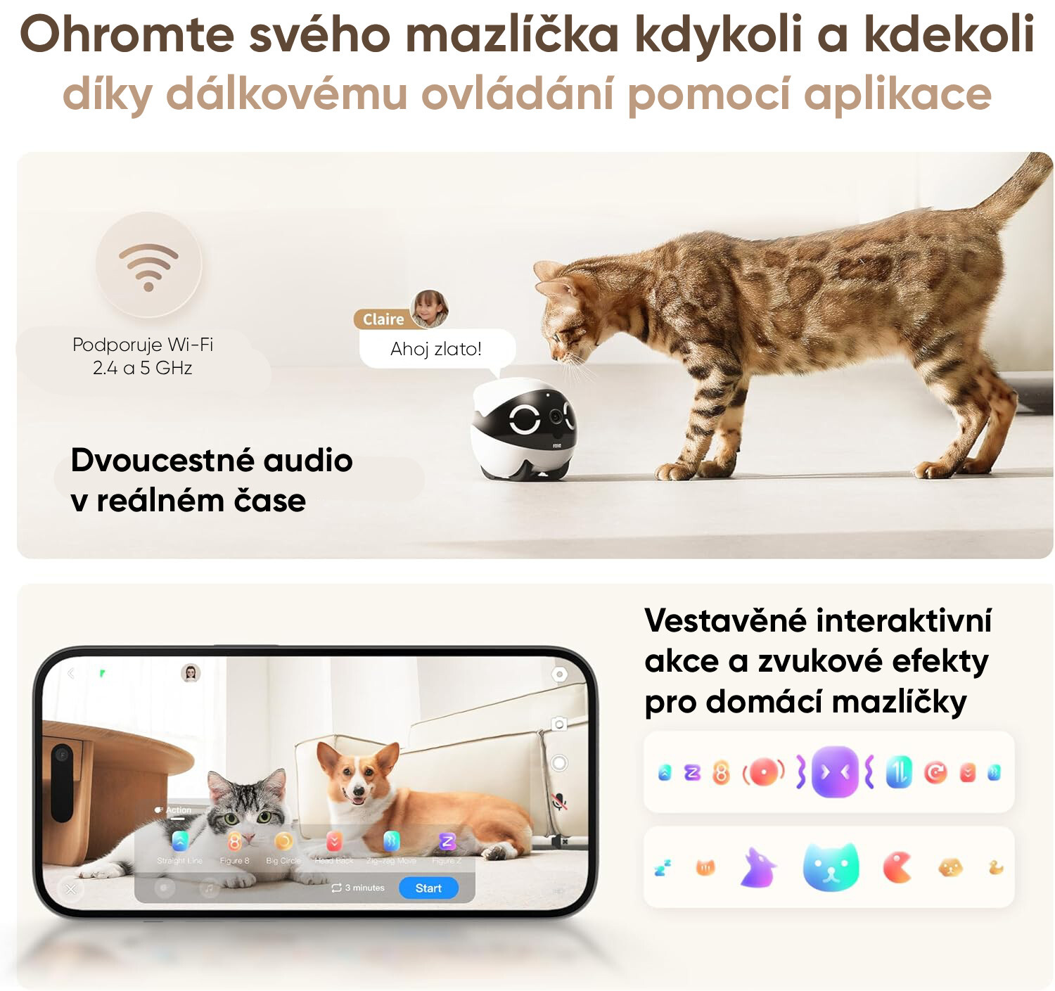 Díky intuitivní mobilní aplikaci můžete robota ovládat na dálku odkudkoli na světě. Sledujte, jak si váš mazlíček hraje, kontrolujte domácnost nebo jen pošlete robota na obhlídku bytu. Ovládání je plynulé a přesné, takže máte pocit, jako byste byli přímo u toho.