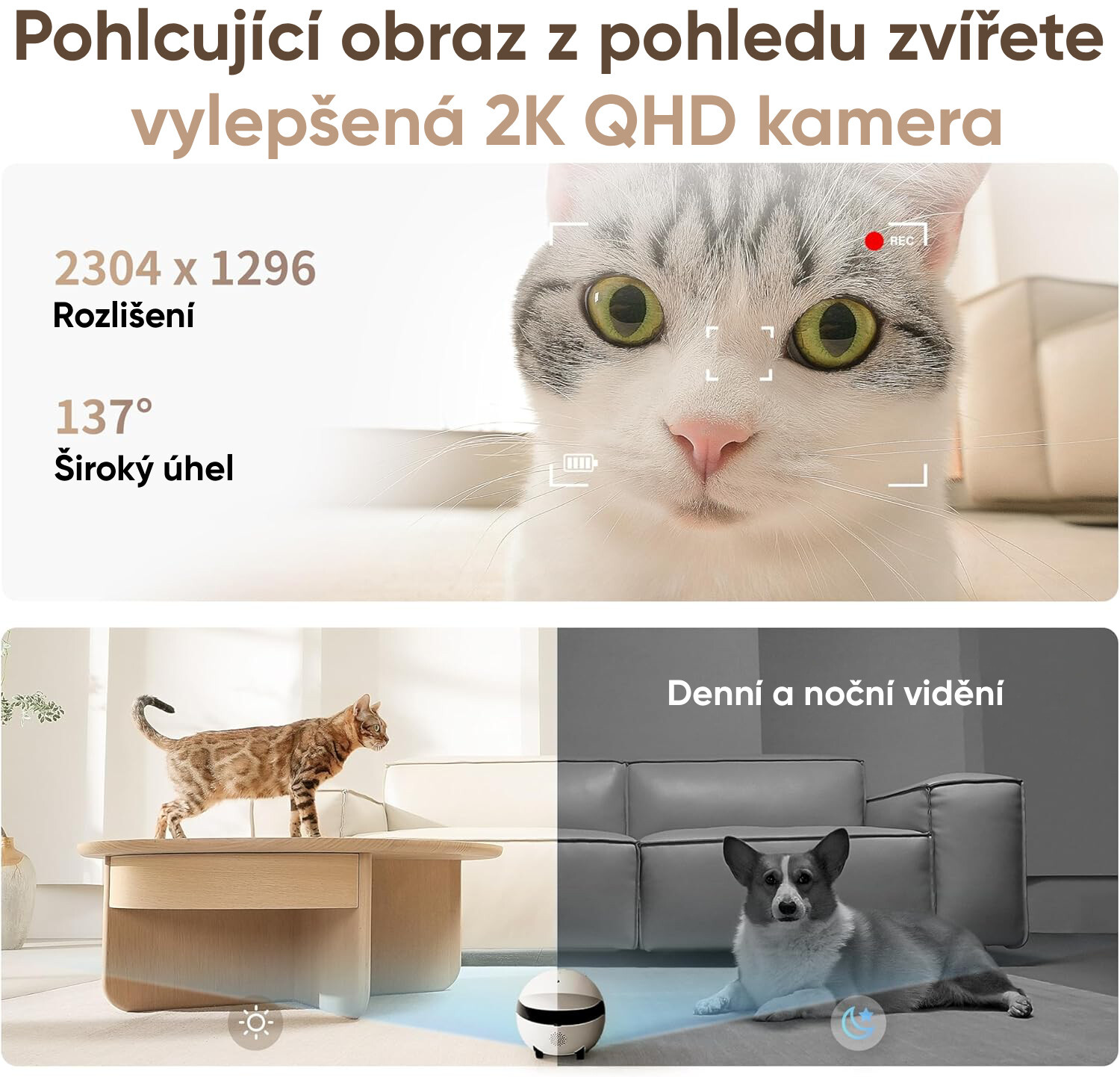 Špičková 2K kamera přináší ostré a realistické záběry v každé situaci. Široký zorný úhel 137° umožňuje zachytit větší část místnosti bez nutnosti otáčet kamerou, takže snadno sledujete dění i v rozích prostoru. Díky vysoké kvalitě obrazu a plynulému streamování je robot ideální pro monitorování domácnosti i nahrávání nezapomenutelných okamžiků vašich mazlíčků.
