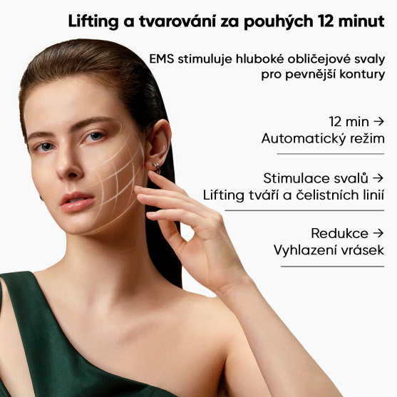 Maska je vyrobena z hypoalergenního silikonového materiálu v potravinářské kvalitě, který je maximálně šetrný i k té nejcitlivější pokožce. Díky tomu je zcela vhodná pro citlivou pleť, nezpůsobuje podráždění a umožňuje dlouhodobé, komfortní používání. Technologie EMS je bezpečná, neinvazivní a klinicky ověřená, takže si můžete dopřát účinné liftingové ošetření s plným pocitem jistoty a pohodlí.
