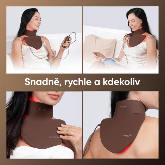 Zapomeňte na neefektivní krémy a několik různých přístrojů. Maska JOVS byla chytře navržena s rozšířenou ozařovací plochou, aby poskytla komplexní péči nejen krku, ale i dekoltu a horní části zad. Tyto oblasti jsou stejně jako obličej vystaveny slunci a projevům stárnutí, ale často na ně zapomínáme. S jedním zařízením tak můžete bojovat proti vráskám na krku, pigmentovým skvrnám v dekoltu a nedokonalostem na zádech.