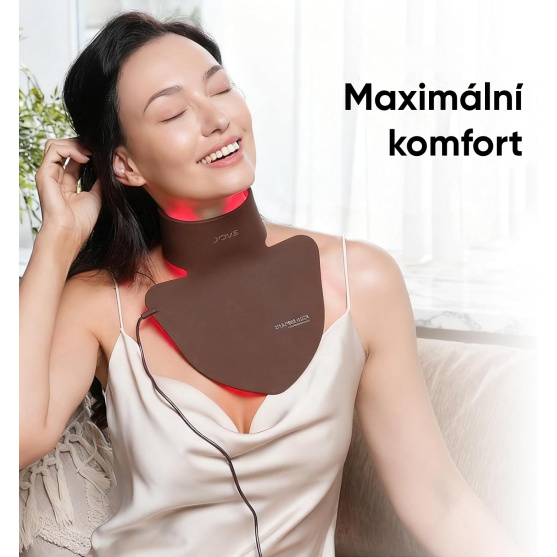 Účinnost světelné terapie závisí na těsném kontaktu s pokožkou. Proto je maska JOVS vyrobena z luxusně měkkého a flexibilního potravinářského silikonu, který se dokonale přizpůsobí každému tvaru těla. Tento 360° design zajišťuje, že světlo působí rovnoměrně a bez energetických ztrát. Pevná, ale pohodlná podpora krku navíc zabraňuje sklouzávání masky, takže můžete během 10minutové procedury relaxovat, číst si nebo se věnovat jiným činnostem.