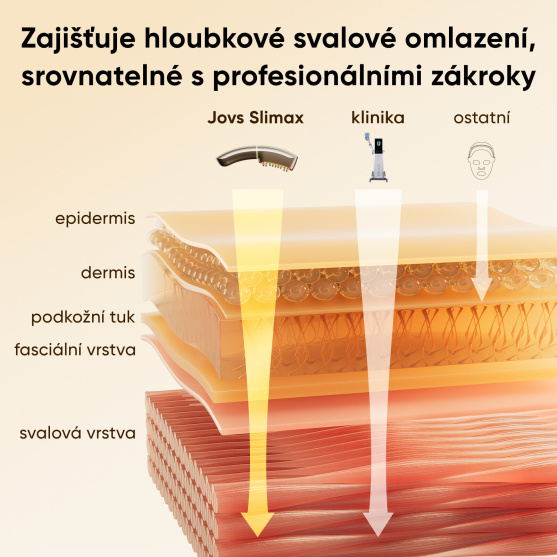 Ochablá pleť často nevzniká jen z nedostatku kolagenu, ale především kvůli oslabení hlubokých podpůrných svalů, které s věkem ztrácejí sílu a přestávají držet kontury obličeje. JOVS Slimax tento problém řeší u samotného zdroje – poskytuje hlubokou svalovou stimulaci, která obnovuje tonus, zpevňuje strukturu pod pletí a navrací obličeji mladistvou oporu. Díky tomu dokáže nabídnout výsledky srovnatelné s profesionálními klinickými procedurami, avšak bez bolesti, bez rekonvalescence a pohodlí vašeho domova. V porovnání s cenou estetických ošetření je investice do Slimaxu zanedbatelná, přičemž získáte dlouhodobý účinek a časovou svobodu.