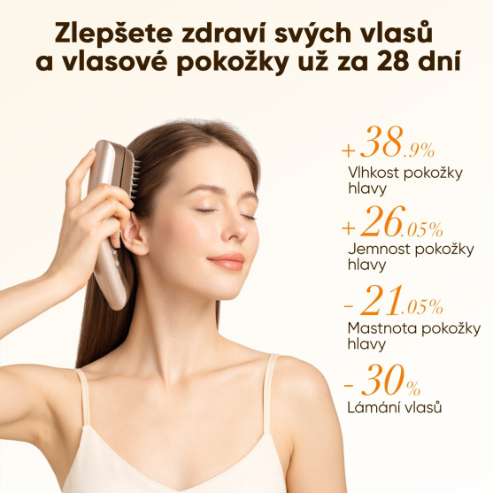 Péče o vlasy se Slimaxem přináší cílené posílení pokožky hlavy i vlasových folikulů díky kombinaci elektrické pulzní vlny a LLLT světelné terapie. Jemné impulzy aktivují kořínky, zlepšují mikrocirkulaci a podporují pevnější, odolnější a zdravější růst vlasů. Patentovaná esence s 18K zlatými nanotyčemi zvyšuje účinnost a pronikání aktivních látek až do hlubších vrstev. Slimax tak pomáhá řešit řídnutí, slabost a únavu vlasové pokožky a přináší viditelně hustší a vitálnější vzhled.