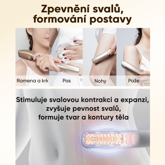 JOVS Slimax není jen pro obličej – jeho SNE tělový režim umožňuje tvarovat a zpevňovat celé tělo v pohodlí domova. Díky 2 500 masážním impulzům za sekundu působí na krk, ramena, pas, paže i nohy, kde pomáhá zvyšovat svalovou pevnost a zlepšovat linie. Jemná stimulace zároveň uvolňuje napětí a podporuje lepší cirkulaci, což vede k hladší a vitálnější pokožce. Slimax tak poskytuje komplexní formování těla, které je rychlé, příjemné a viditelně účinné.