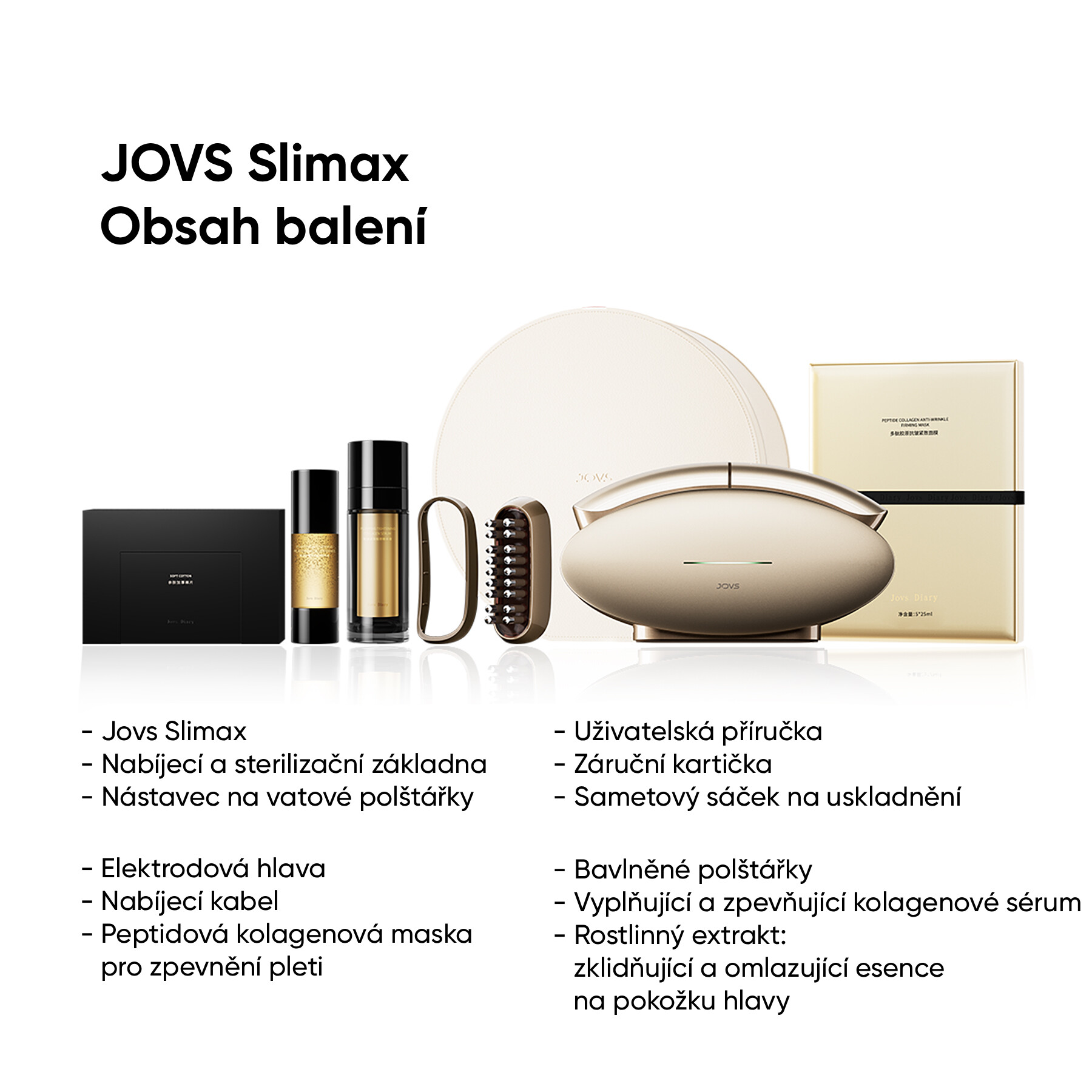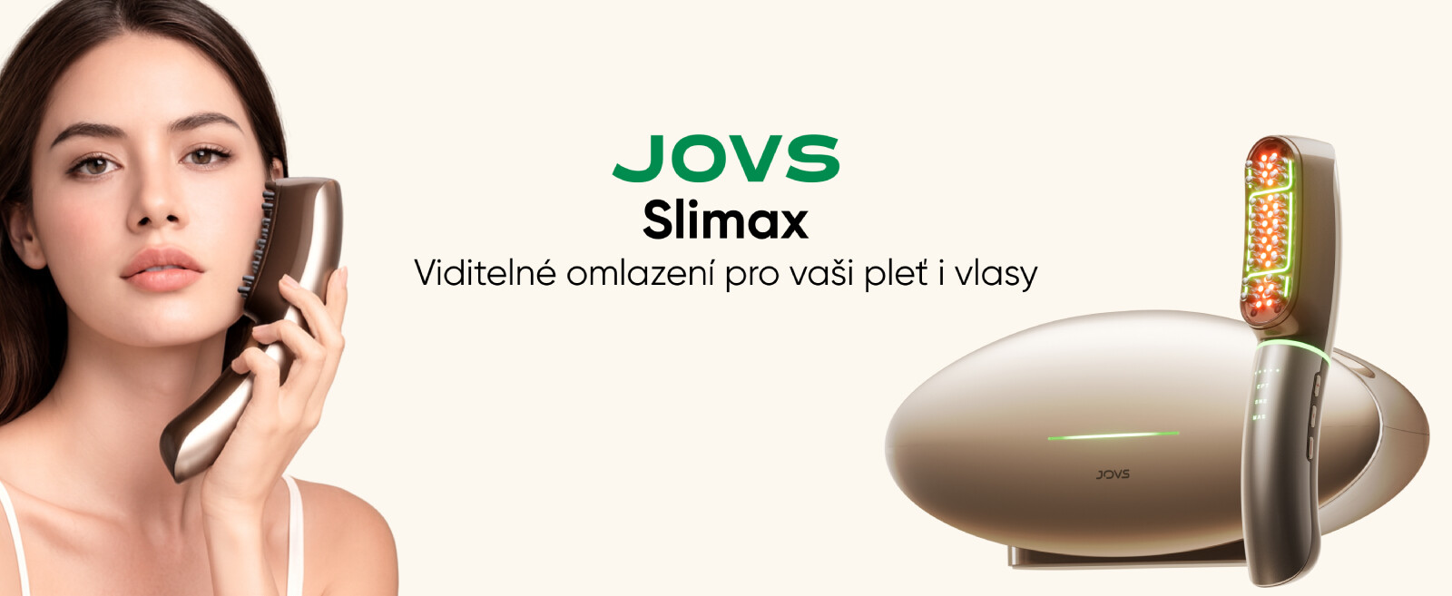 JOVS Slimax kombinuje péči o obličej, tělo i vlasovou pokožku v jednom chytrém zařízení, takže zvládnete kompletní anti-aging rutinu bez návštěvy salonu. Využívá jemné elektrické pulzní vlny, světelnou terapii a patentované aktivní látky, které společně zpevňují svaly, vypínají pleť a posilují kořínky vlasů. Díky této synergii působí přesně tam, kde vznikají první známky stárnutí, a přináší výsledky během několika minut. Pečovat o sebe je důležité – a Slimax umožňuje udržet si mladistvý, svěží vzhled pohodlně a bez kompromisů.