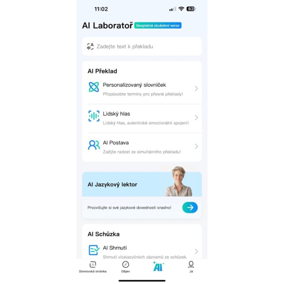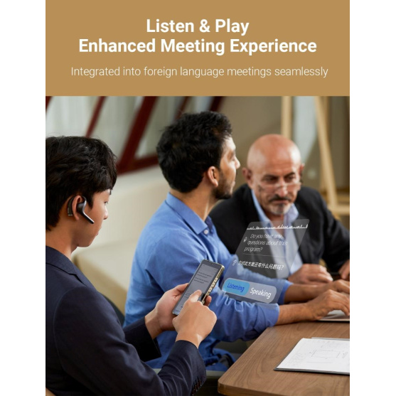 *Překlad online meetingů a médií do 500 minut měsíčně zdarma. Moznost dokoupení minut v aplikaci dle podmínek výrobce. Překlad 1 na 1 a překlad „listen & play“ není zpoplatněn ani omezen.